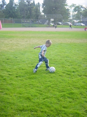 Tanis played soccer for the first time this last year. It was through the Juniper Swim and Fitness facility. It was...odd. They have a coach, they have practice, they don't play with the other kids, they play with you. There is no scrimmage nor games. The practices consist of the "coach" giving you a handout at the beginning and setting up work stations. You get a walk through on the drills and then Tally-Ho! You go forth and slay blades of grass. The difficulty is that I while I played 12 seasons of soccer, I hadn't done it for twenty years. Nor had I ever tried to coach or teach someone how to play soccer. Tanis was patient with me and we had more fun trying to steal the ball from one another than doing the actual drills. He has soccer-drill ADD. He runs through it two times; he is done. Time to steal the ball from dad. Towards the end of soccer we started having a lot of fun together, more than I thought I would, and he learned a bit of soccer. I won't say he was impressed with the sport, but as Americans, the rest of aren't either.